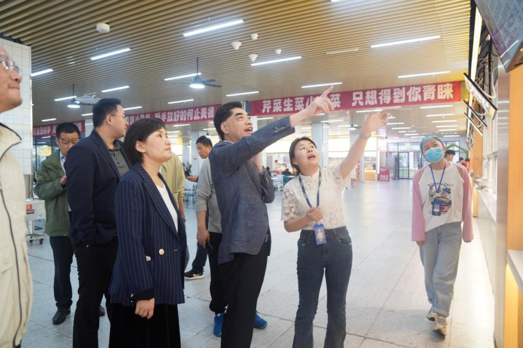 曹伴好一行参观了学校八里湖新校区,听取了新校区建设和运行情况的介绍,并深入学生宿舍、食堂进行调研,实地察看了学生的住宿条件和食堂环境卫生,重点检查了消防等设施的配备,详细了解食品安全和饭菜价格等情况。