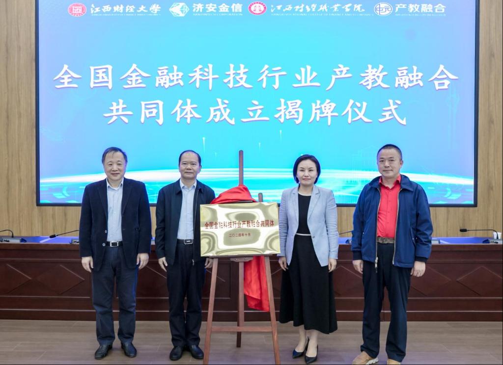 10月25日,由江西财经大学、北京济安金信科技有限公司、江西财经职业学院三方牵头发起的全国金融科技行业产教融合共同体在江西南昌正式成立,江西财经大学校长邓辉,江西省教育考试院党委书记刘彪文,中国人民大学金融信息中心主任、北京济安金信科技有限公司董事长杨健,深圳市中元产教融合科技有限公司董事长燕中元,江西财经职业学院校长彭慧出席成立大会并致辞,江西财经大学党委常委、副校长李春根主持会议。