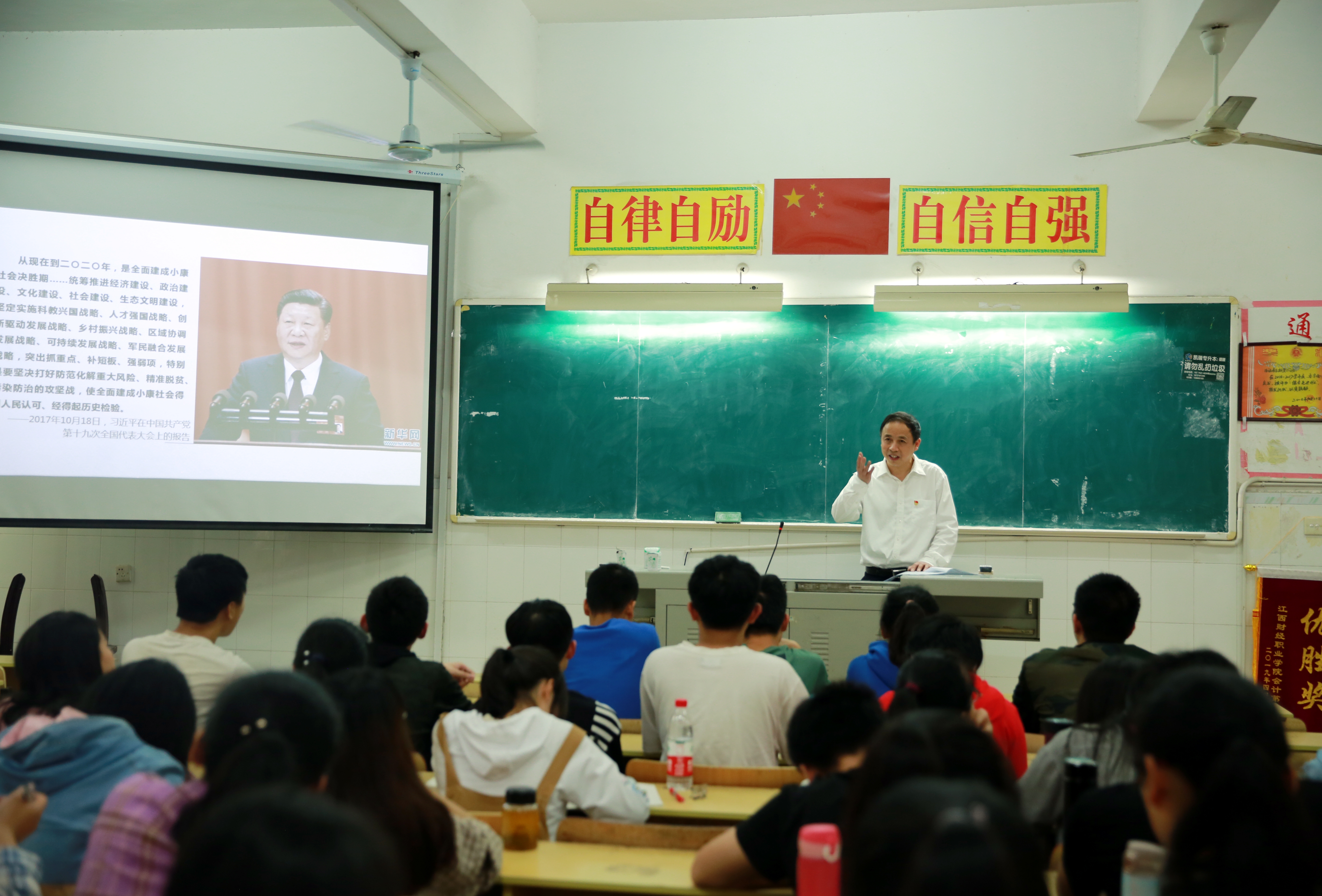 2019年5月15日下午,校党委书记林火平教授在教学楼308教室以“增强忧患意识 防范风险挑战”为题给学生上了一次生动的“形势与政策”课,本科部2018级学生参加。