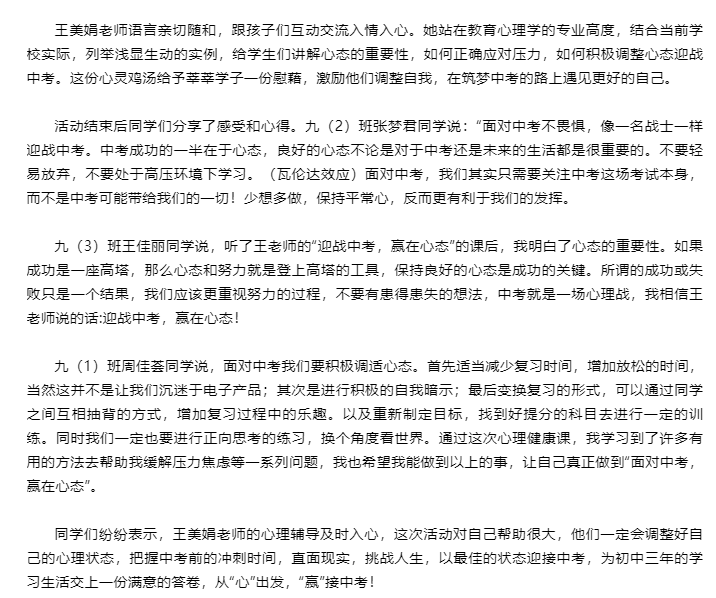 百场辅导进百校㉜ | 迎战中考,赢在心态——王美娟老师走进九江庐山西海柘林镇学校