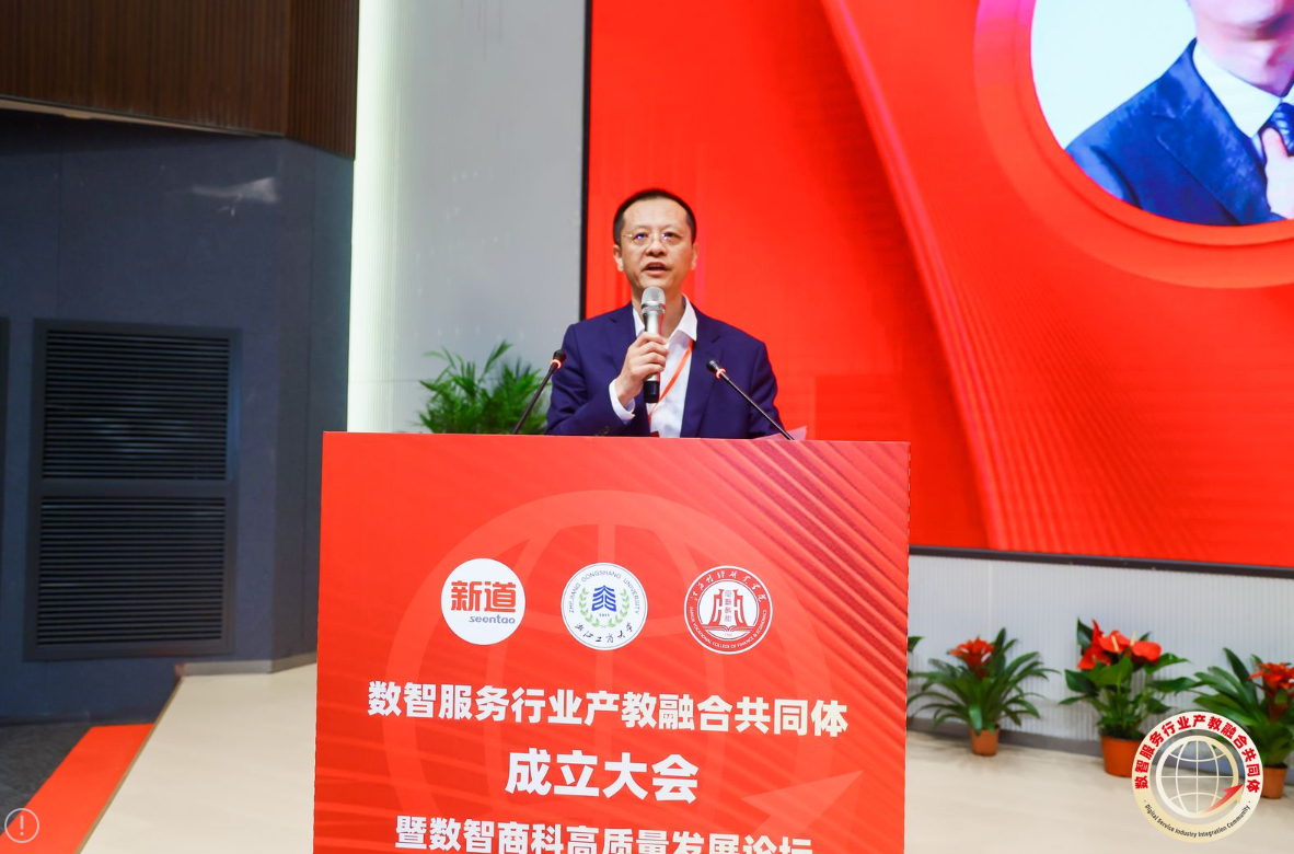 浙江工商大学工商管理学院(MBA学院)党委副书记袁宏亮在致辞中表示,近年来,浙江工商大学在积极落实产教融合战略,主动加强产教融合平台建设,构建多方协同育人机制,提高人才培养质量。希望在数智服务行业产教融合共同体内,各高校和企业之间能进一步加强融合与合作,推动新技术与传统学科融合发展,促进人才链、创新链与产业链的有机深度融合,提高高校人才供给与企业人才需求的匹配度,发挥好人才的支撑作用,推动产业和社会经济发展。浙江工商大学将充分发挥自身学科特色和优势,携手共同体内成员单位,共创更高质量教育体系,共育更高水平现代服务人才,为以中国式现代化全面推进强国建设、民族复兴伟业作出更大贡献。