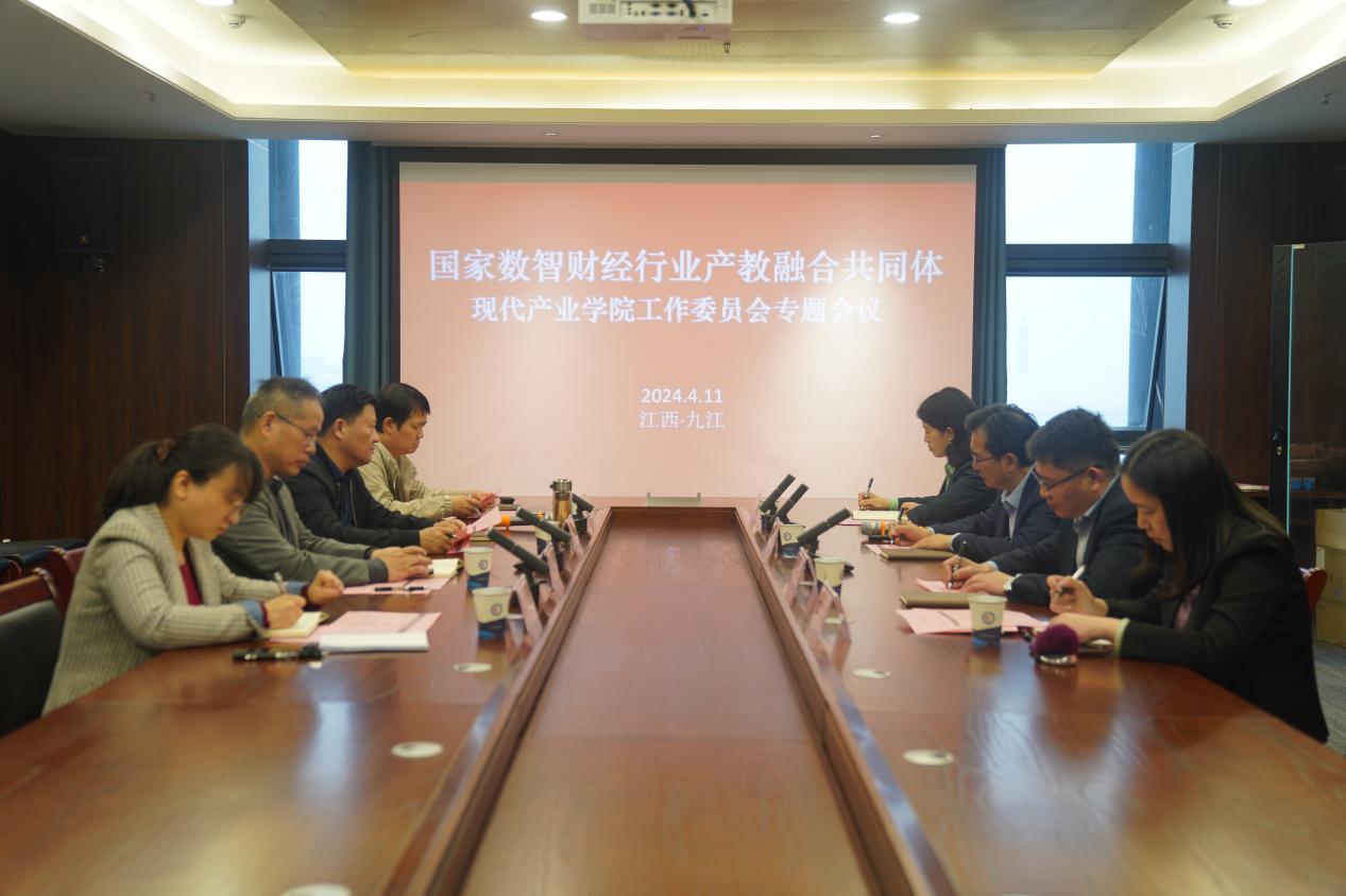4月11日下午,国家数智财经行业产教融合共同体在我校八里湖校区行政楼727会议室召开现代产业学院工作委员会专题会议。