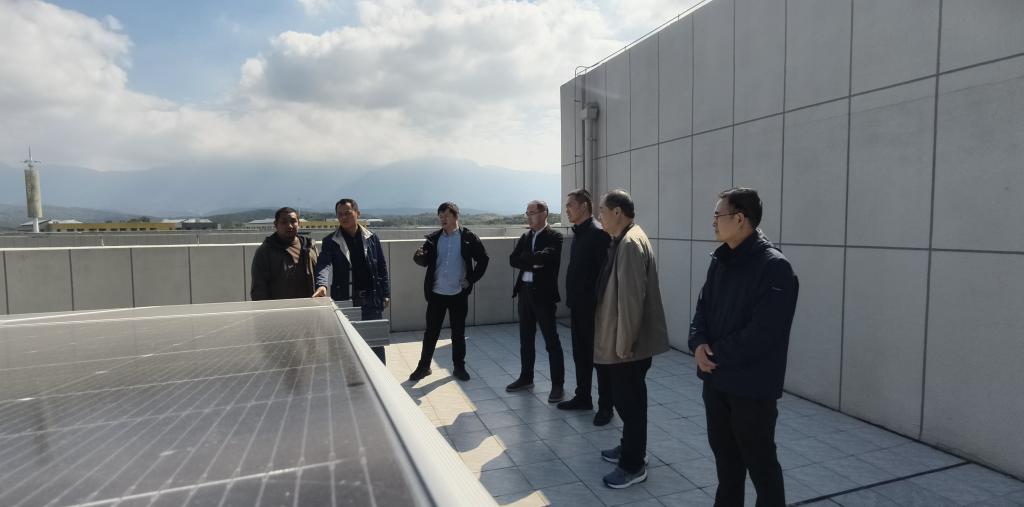 随后,调研团队实地参观考察了学校第一教学楼屋顶分布式光伏发电设施和南区光伏车棚,对我校的光伏发电、光伏车棚等新能源项目建设给予了充分肯定。