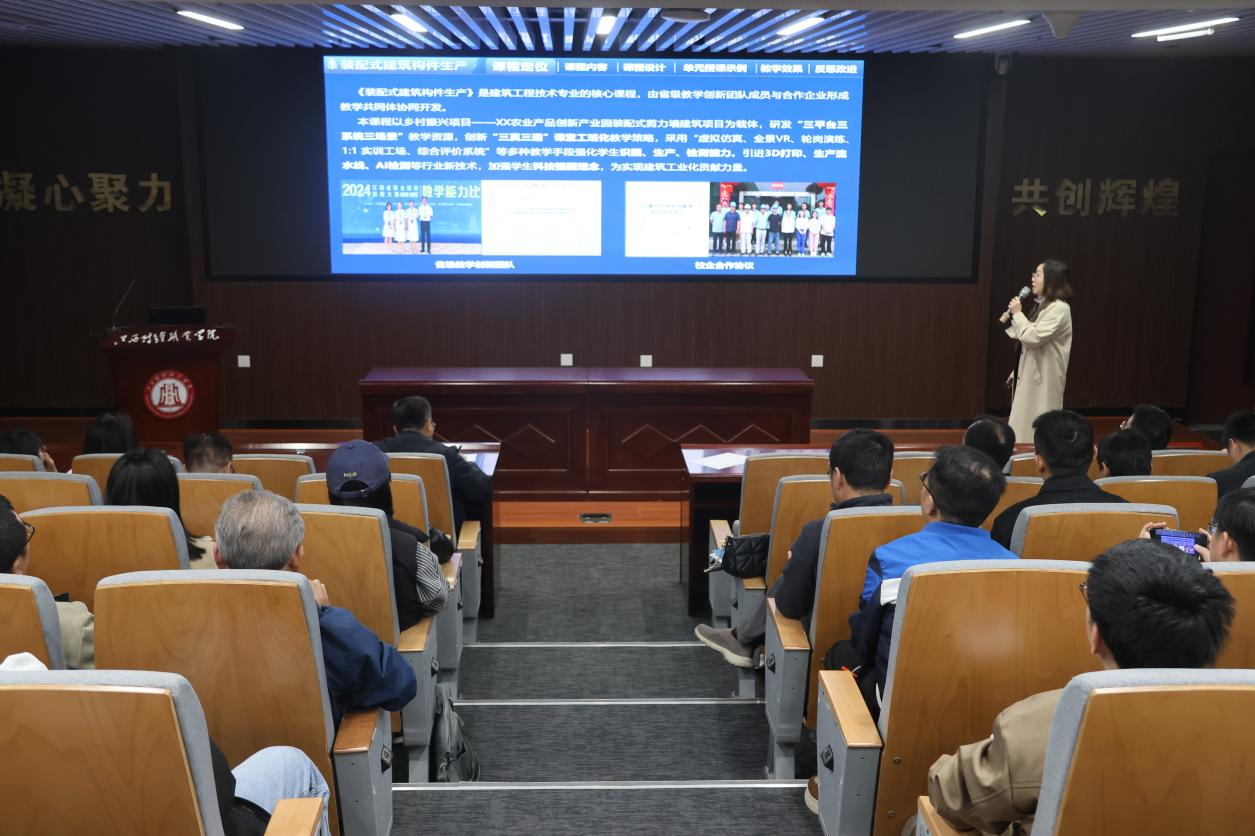 财税金融学院曹晗曦、信息工程学院王欢、城乡建设学院张丽雅以及马克思主义学院江国钰依次登台,分别以《商业银行综合业务》《网络设备配置与安全》《装配式建筑构件生产》《习近平新时代中国特色社会主义思想》课程为例,进行了说课展示。