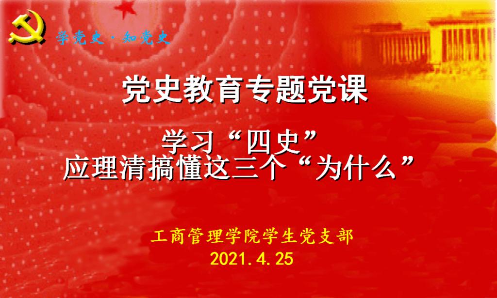 以史为鉴,可以知兴替。时值中国共产党建党100周年,为进一步深入学习贯彻落实习近平总书记关于学习党史的重要讲话精神,教育引导广大学生党员学史明理、学史增信、学史崇德、学史力行,工商管理学院学生党支部于4月25日下午在教学楼102教室开展党史学习教育专题党课活动。学院党总支书记武丹担任授课人,全体学生党员、发展对象及入党积极分子参加。