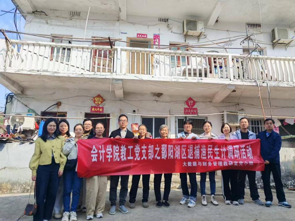11月2日,会计学院教工党支部大数据与财务管理教研室党小组开展了一场党建与乡村振兴实践相融合的党小组活动暨鄱阳湖区退捕渔民生计调研活动。此次调研活动由党小组组长肖铁锋组织,教研室十位党员教师共同参与,深入位于鄱阳湖边的九江市濂溪区蛤蟆石渔村开展。