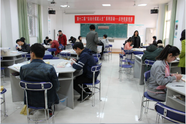 为激发同学们的专业学习兴趣,检验专业技能水平,提高动手操作能力,丰富校园文化生活,2016年3月24日下午,会计第一学院在会计实训中心的会计基本技能实训室举办了第十二届“以会计成就人生”系列活动——点钞技能大赛,来自我院14级会计、会计(注册会计师方向)专业、15级会计专业和本科部14、15级会计学专业的近200名学生参加了此次竞赛。