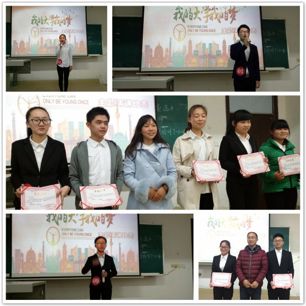 2016年3月18日晚7:00,经济贸易学院在综合楼阶梯教室三举行了“我的大学。我的梦”主题演讲比赛。此次比赛经过了预赛环节,共有19名同学表现突出进入决赛。在决赛环节,参赛选手用他们真挚的语言、饱满的激情、自信的表现诠释了“我的大学梦”,将个人理想与祖国发展紧密结合起来,展示了当代大学生良好的精神风貌和对美好未来的渴望,也表达了学生追梦的决心与信心。经过激烈角逐和评委们的认真评定,陈茹梦、万伟强等8名同学分获一、二、三等奖。经济贸易学院党政办公室主任崔晓慧老师为获奖选手颁发了奖状与奖品。