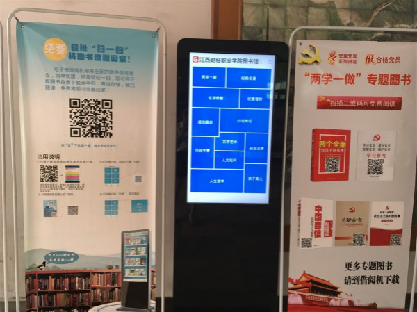 会上,熊水金对近期“两学一做”学习教育的总体要求、主要内容、方法措施进行了详细介绍。图书馆为助力我院“两学一做”学习教育活动开展,充分利用电子图书自助借阅机服务平台开设的“两学一做” 主题图书电子版及相关热点学习资料专区。“两学一做”专区中《四个全面党员干部读本》、《学习党章·遵守党章·贯彻党章·维护党章学习参考》、《中国自信-民族复兴大思维》、《关键在党》、《社会主义核心价值观学习读本》等书籍及资料一应俱全,操作起来也十分便捷,读者可以在线阅读,也可以通过“超星移动图书馆”手机APP扫码下载文献资源。