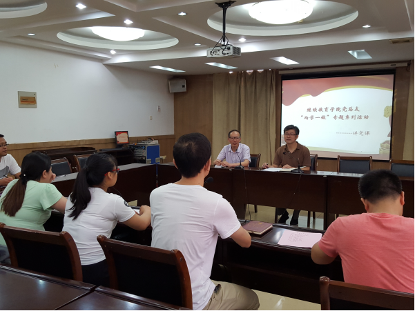 6月23日下午,为贯彻落实校党委“两学一做”学习教育的精神和工作要求,继续教育学院党总支书记吕建斌在培训中心二楼会议室讲党课,我院全体教师党员、学生党员出席活动。