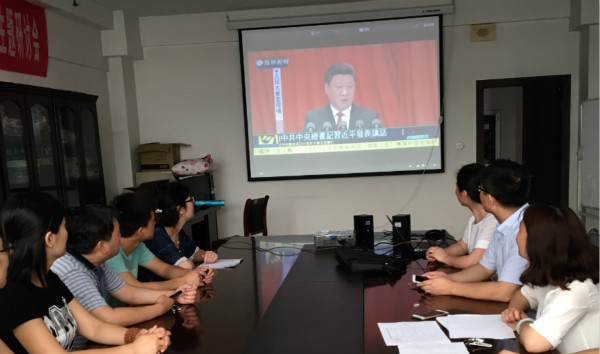 根据我校党校的统一部署, 2016年7月1日上午,工商管理学院组织教职工在党员活动室收看庆祝中国共产党成立95周年大会现场直播。 上午10时,庆祝中国共产党成立95周年大会在人民大会堂举行。会上,对全国优秀共产党员、优秀党务工作者、先进基层党组织进行表彰。