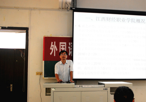 王胜华作了主题为“我的梦---从外国语学院起航”的讲话。他代表外国语学院全体师生对新同学的到来表达热烈的欢迎,向同学们介绍了江西财经职业学院悠久的办学历史和良好的社会声誉及外国语学院师资力量、实训条件、专业特色和就业优势,并提出了四点希望:一、希望同学们学会生活,学会自立,适应新的学习、生活环境;二、希望同学们树立自信,做阳光青年;三、希望同学们学会学习,奋发向上,努力成为知识与技能的“土豪”;四、正确认识并利用好网络。