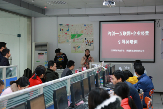 为进一步提高专业教师业务水平,推进我院承担的江西省高职创新发展行动计划——创新创业教育专门课程建设,工商管理学院联合新道科技有限公司于12月9日在第二实训楼VBSE中心举办了主题为《约创——互联网+企业管理》的师资培训研讨班。来自江西旅游商贸职业学院、江西工业工程职业技术学院、江西现代职业技术学院、江西财经职业学院等20多所院校的32位经管类专业教师参加了培训。