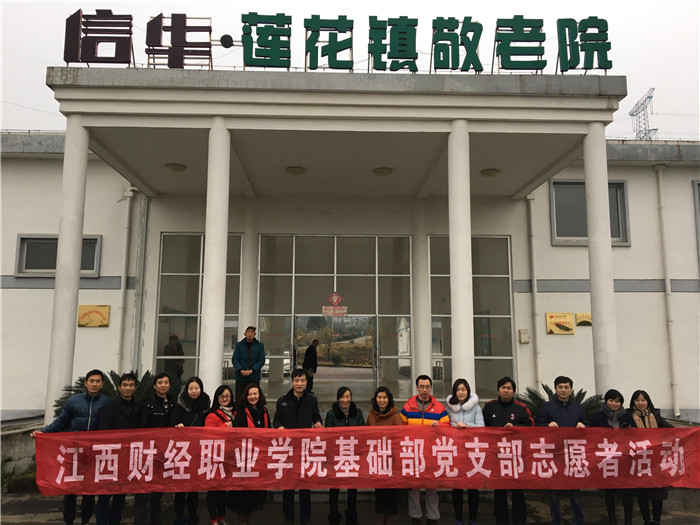 12月16日下午,我校基础课教学党支部全体党员在支部书记郭红的带领下,前往九江市莲花镇敬老院开展志愿者活动,并送去慰问品。敬老院陈院长热情迎接,并对我校党员的志愿活动表示感谢。