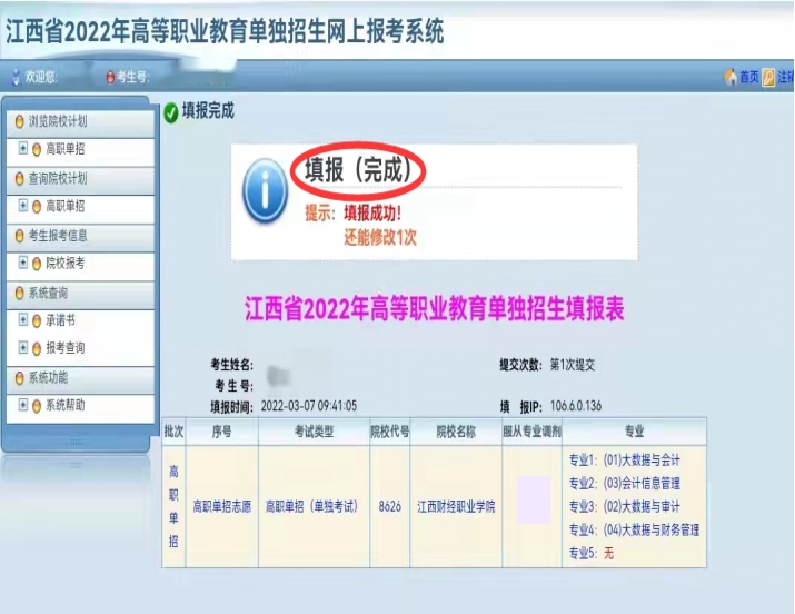 第六步:报考填报完成