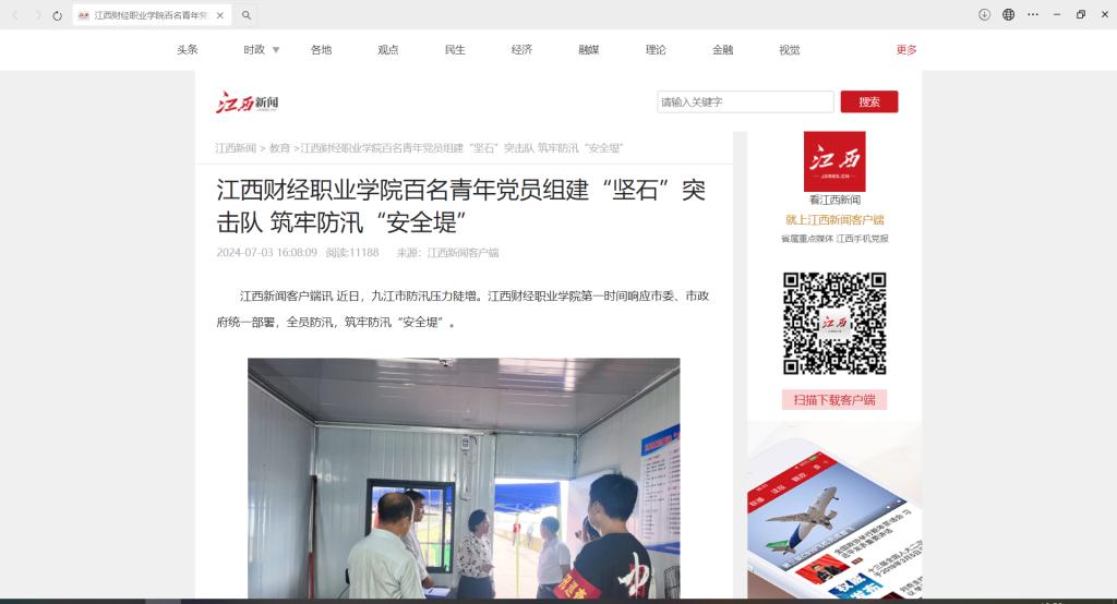 江西新闻:江西财经职业学院百名青年党员组建“坚石”突击队 筑牢防汛“安全堤”