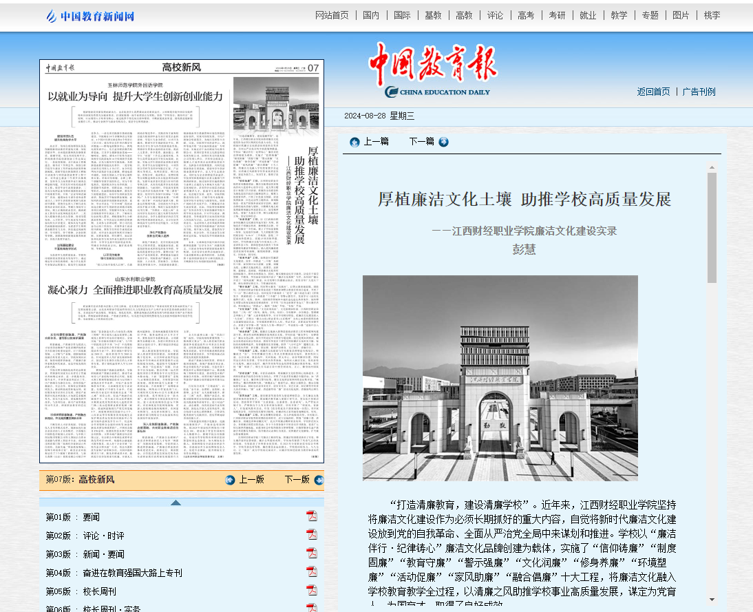 【《中国教育报》报道】厚植廉洁文化土壤 助推学校高质量发展——江西财经职业学院廉洁文化建设实录