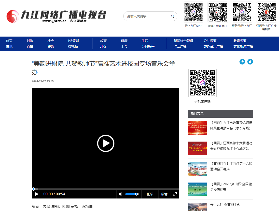 【九江网络广播电视台报道】“美韵进财院 共贺教师节”高雅艺术进校园专场音乐会举办