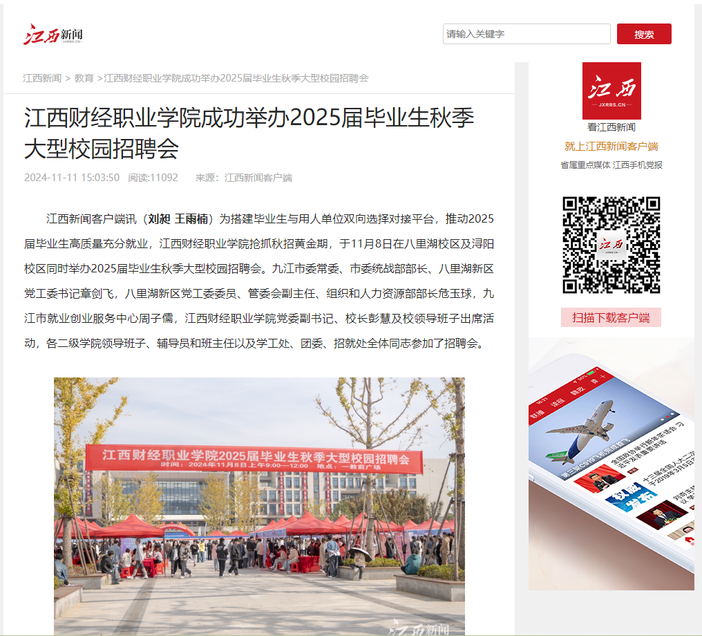 【江西新闻报道】江西财经职业学院成功举办2025届毕业生秋季大型校园招聘会