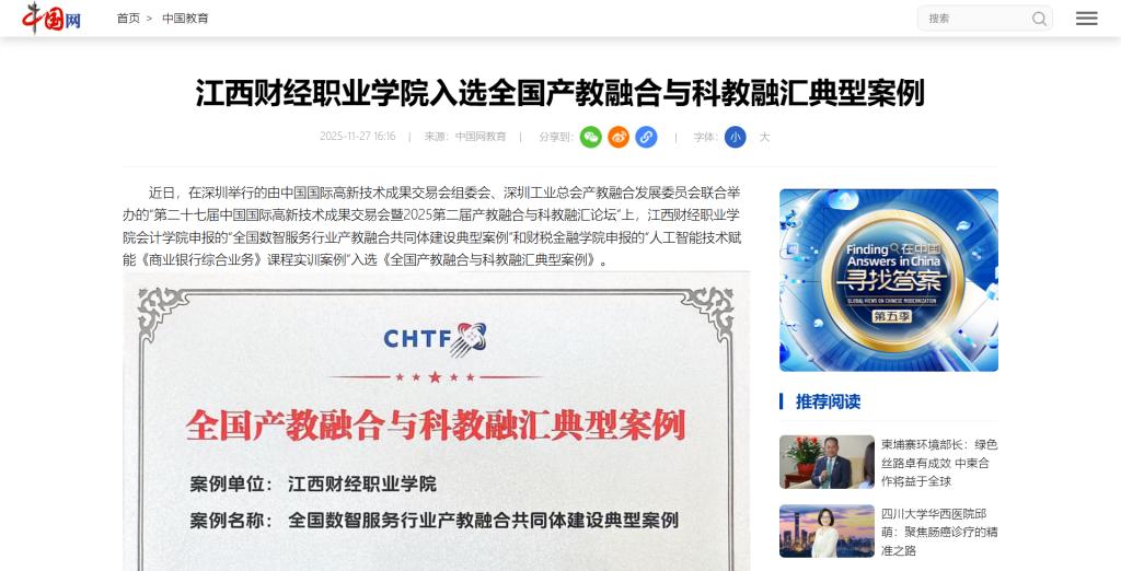 (中国网)江西财经职业学院入选全国产教融合与科教融汇典型案例