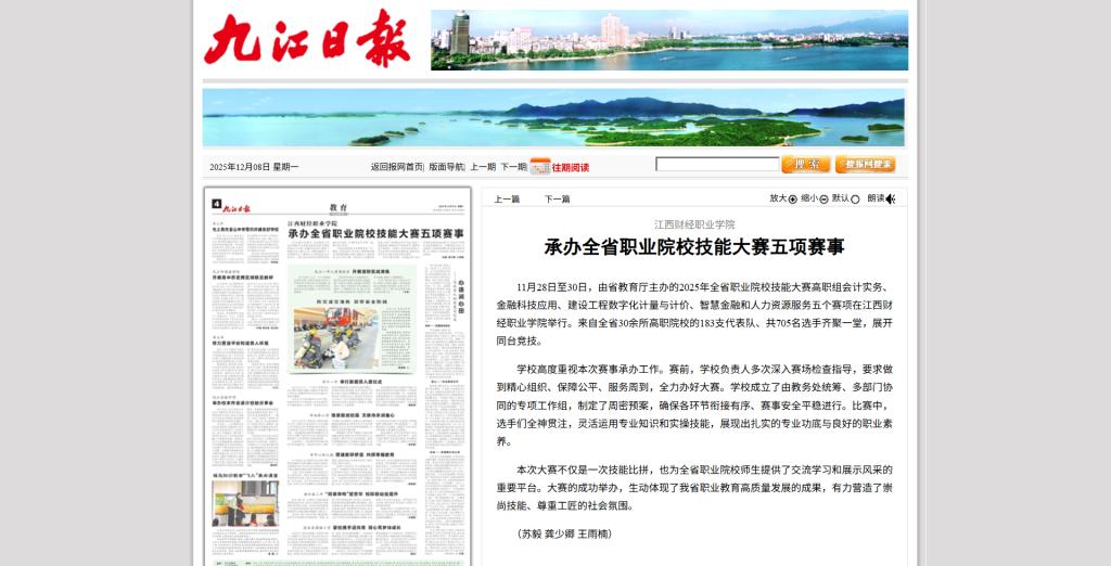 (九江日报)江西财经职业学院 承办全省职业院校技能大赛五项赛事