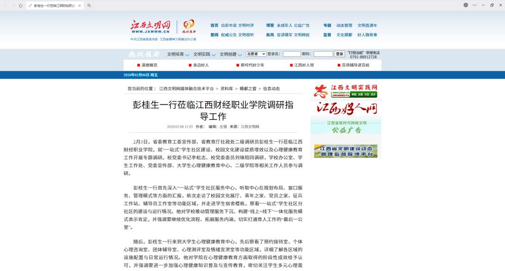 (江西文明网)彭桂生一行莅临江西财经职业学院调研指导工作