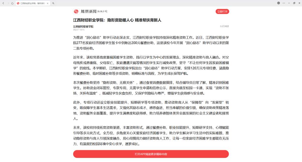(凤凰网)江西财经职业学院:隐形资助暖人心 精准帮扶育新人