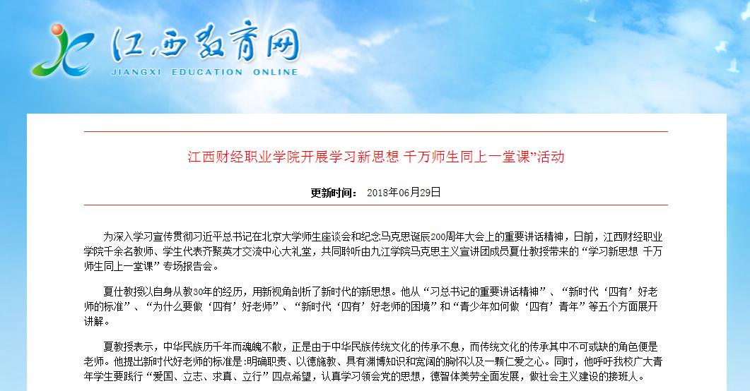 江西教育网:江西财经职业学院开展学习新思想 千万师生同上一堂课”活动
