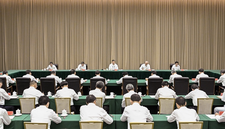 11月6日,中共中央总书记、国家主席、中央军委主席习近平在海南三亚听取海南自贸港建设工作汇报,发表了重要讲话。新华社记者 燕雁 摄